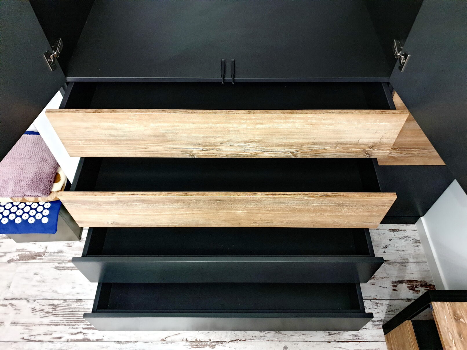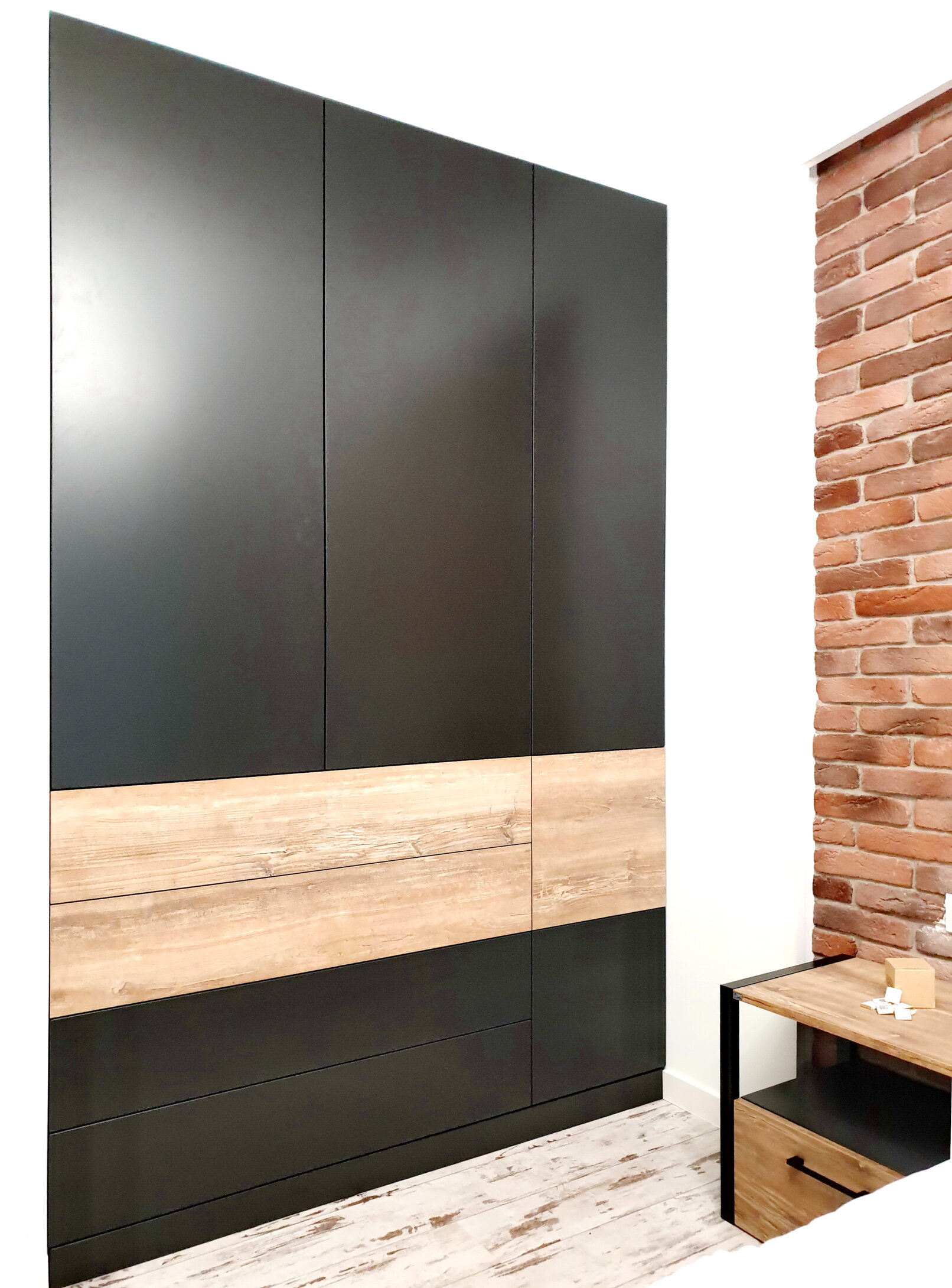 Чорна шафа з деревʼяними вставками – сучасний мінімалізм на замовлення