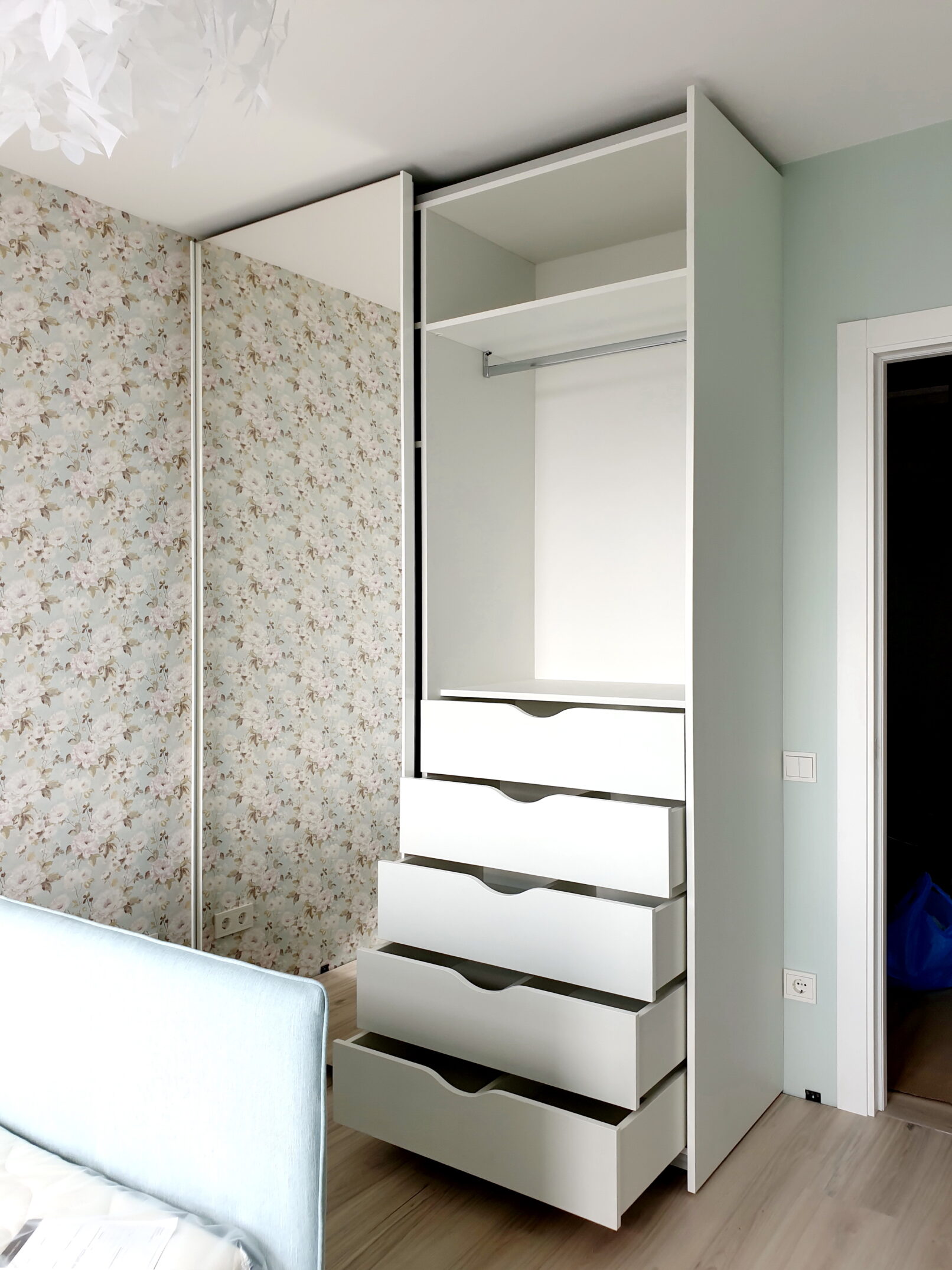 Усередині – максимальна адаптація. Полиці, шухляди, секції – усе налаштовується під зріст, кількість одягу й навіть звички власника. Це не універсальна шафа – це особиста система зберігання.