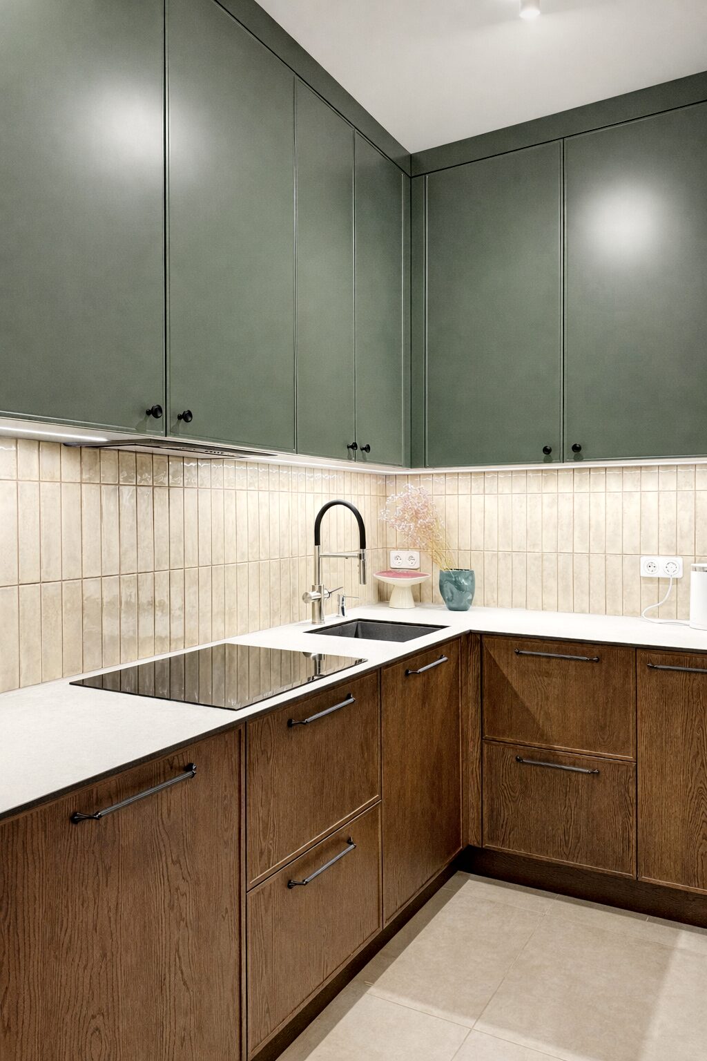 Таке поєднання кольору і текстури створює не просто модну кухню, а інтер’єр із характером, який зберігає актуальність роками.