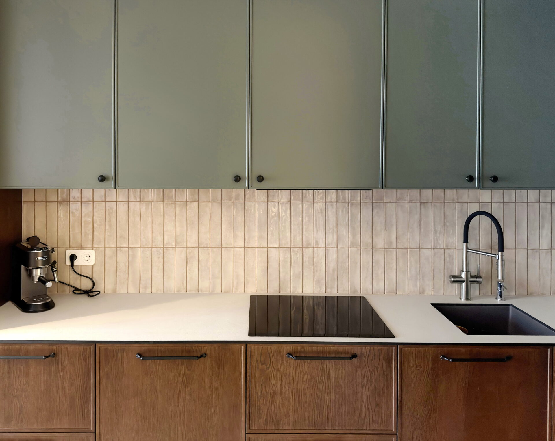 Таке поєднання кольору і текстури створює не просто модну кухню, а інтер’єр із характером, який зберігає актуальність роками.