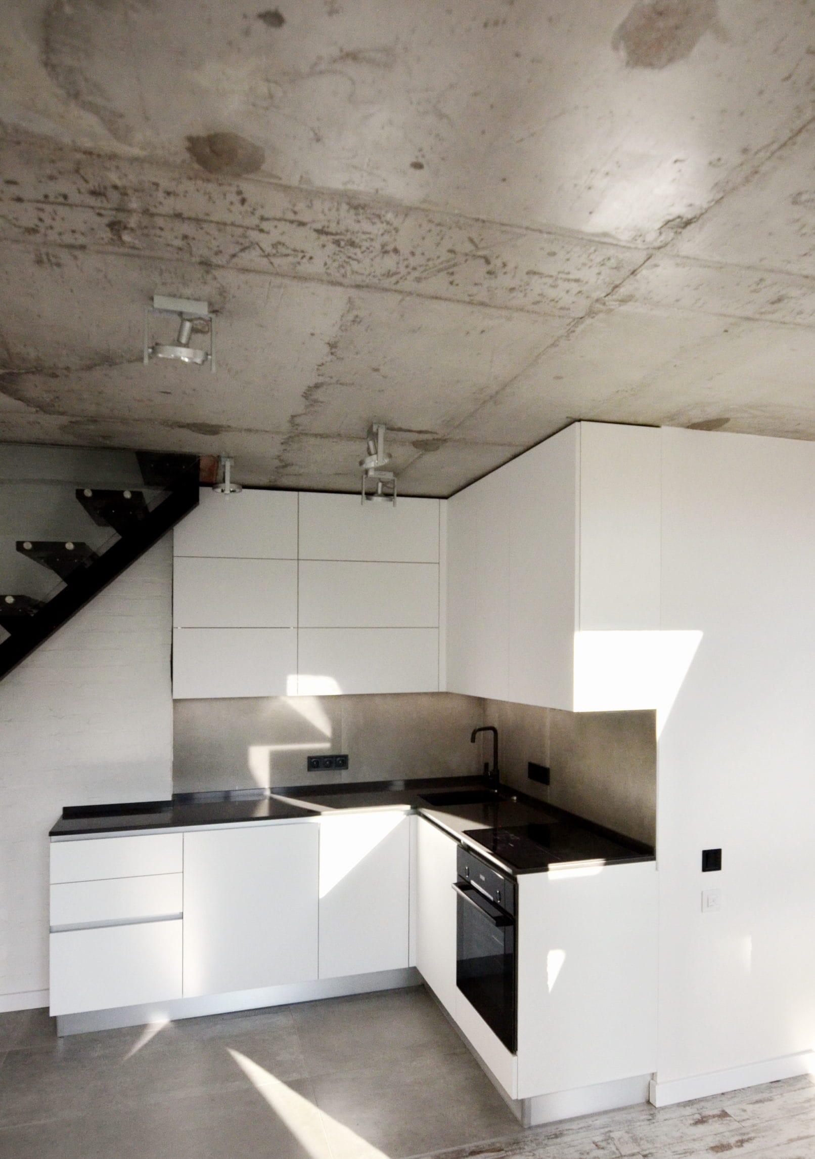 Кухня в стилі лофт під сходами – ідея для малогабаритної квартири