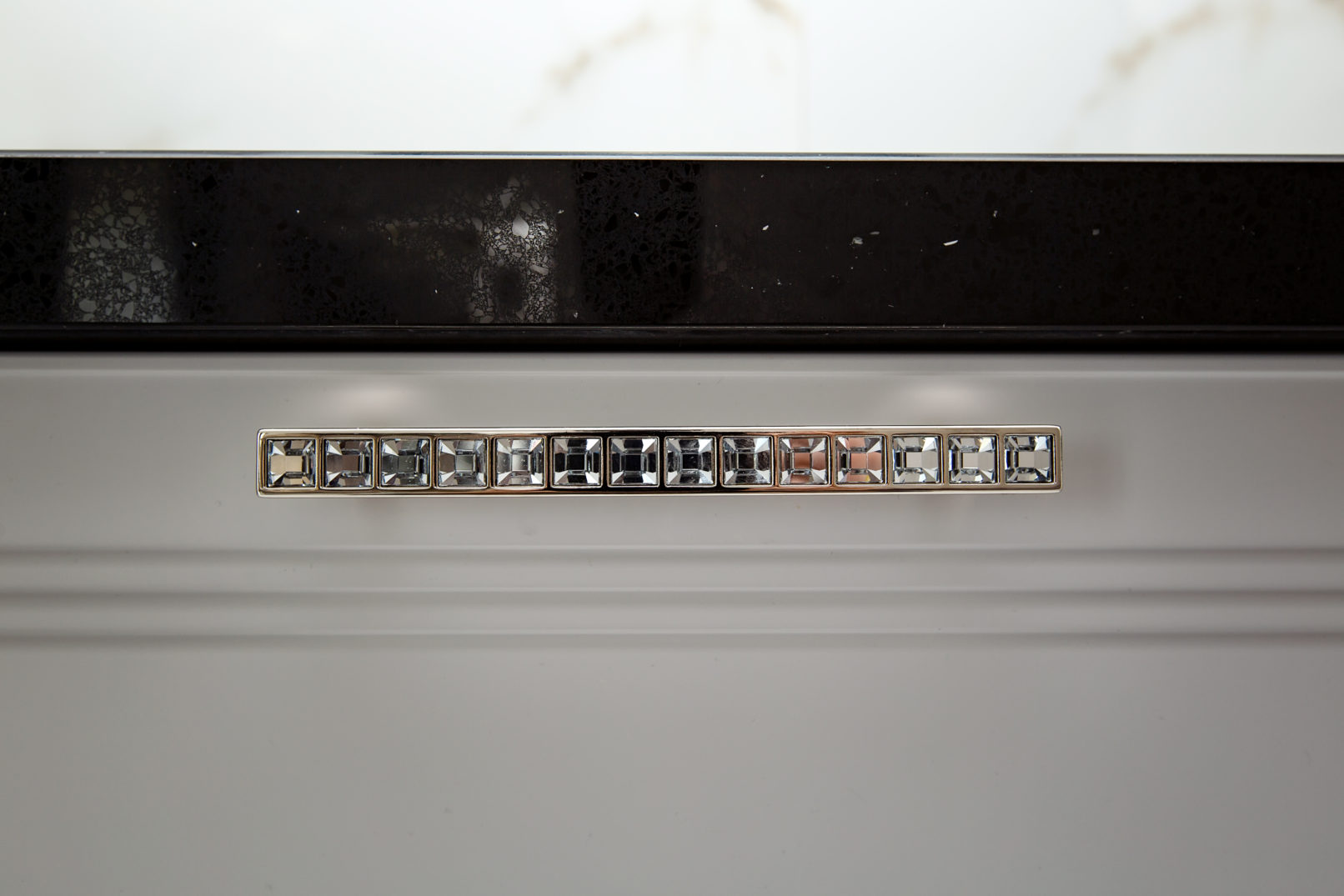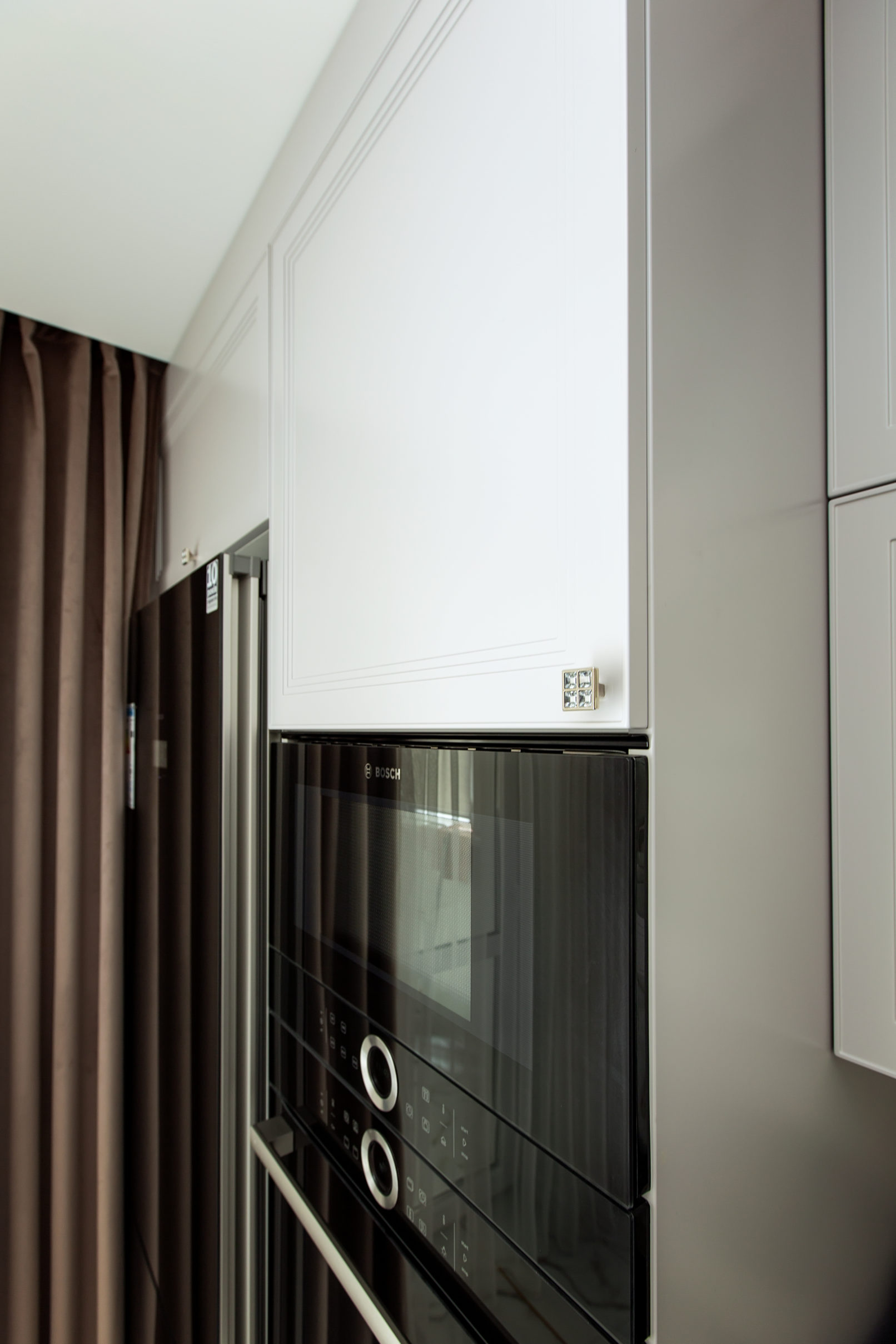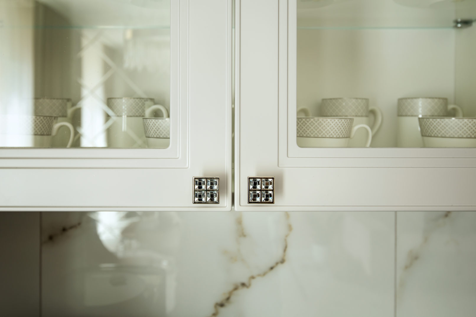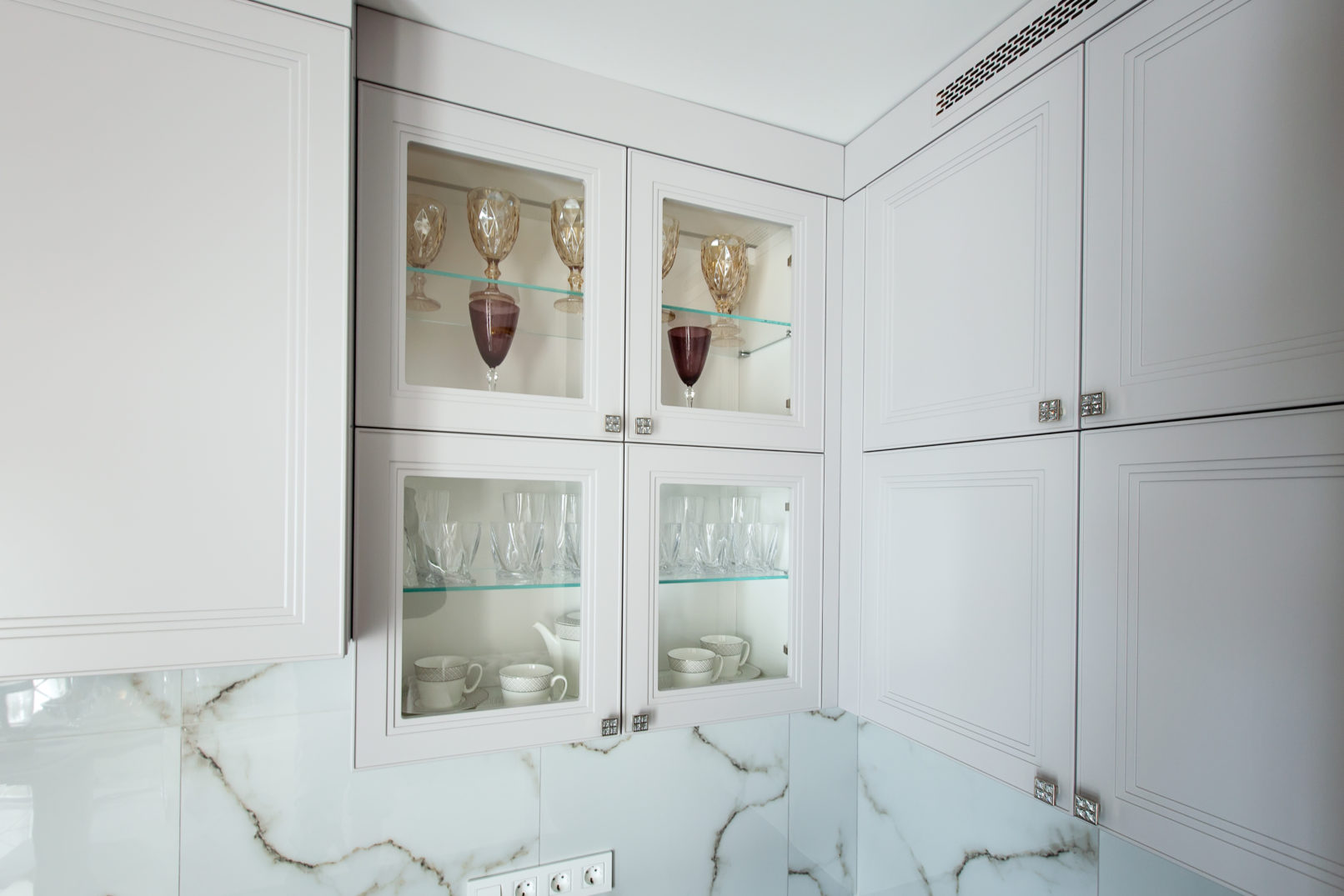 Ця класична кухня створена для тих, хто цінує стриману елегантність і перевірені часом рішення. Світлі фасади з делікатним фрезеруванням надають меблям вишуканості, а чорна кварцова стільниця додає глибини та контрасту. Скляні шафки з підсвічуванням демонструють улублені сервізи, водночас зберігаючи легкість інтер’єру. Вбудована техніка Bosch, індукційна варильна поверхня, сучасна фурнітура з доводчиками – усе це забезпечує комфорт щоденної експлуатації.