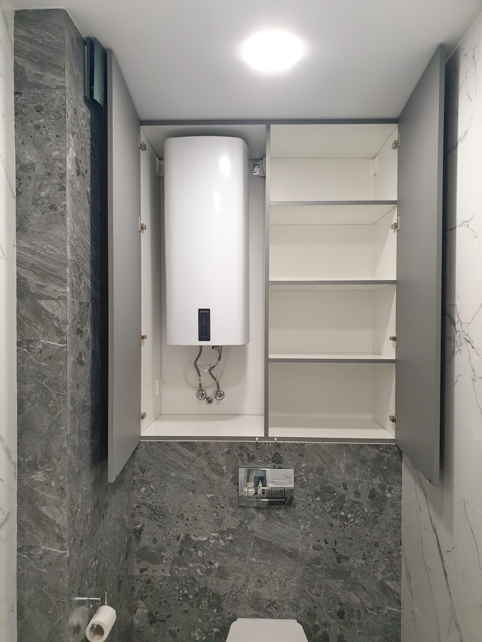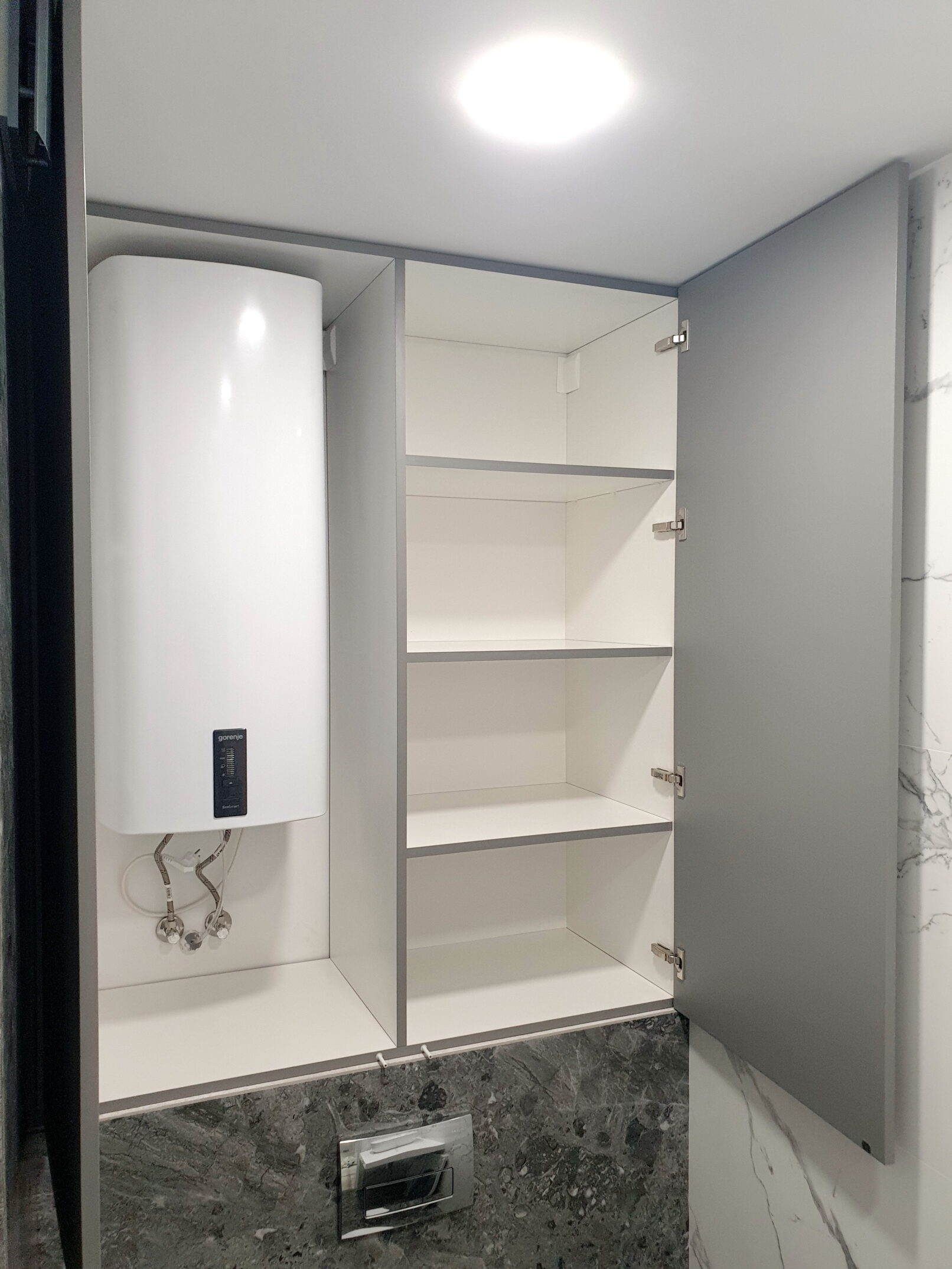 Кожен сантиметр має значення: потрібно врахувати підключення бойлера, сантехніку, вентиляцію, прихований доступ до фільтрів і запірних вентилів. Тому у проєктах меблевої майстерні Добра Шафа ми передбачаємо все від технічних отворів до легкого сервісного доступу.