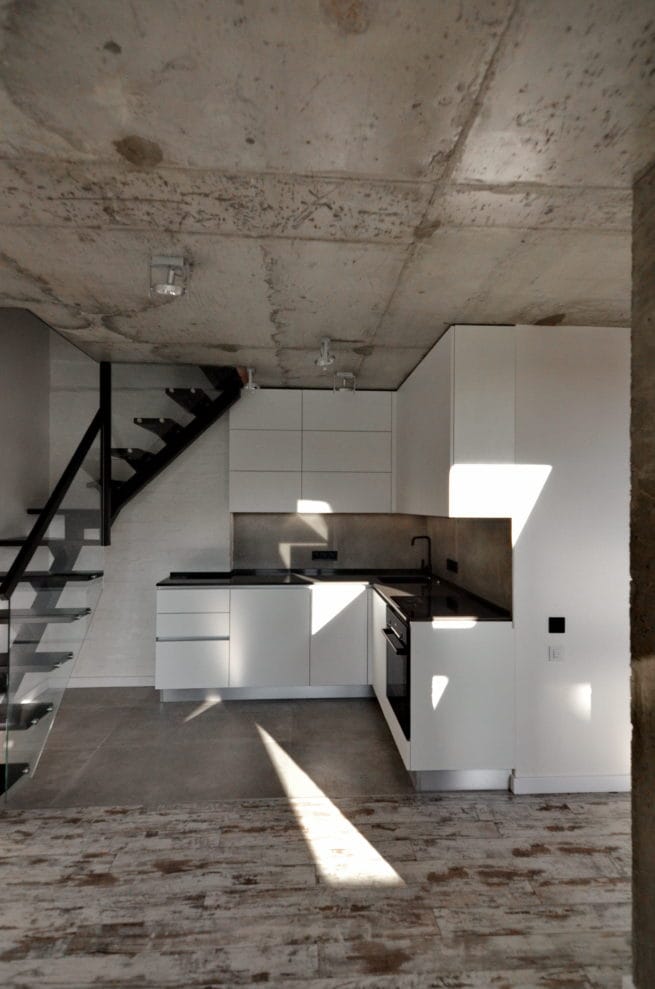 Кухня в стилі лофт під сходами – ідея для малогабаритної квартири