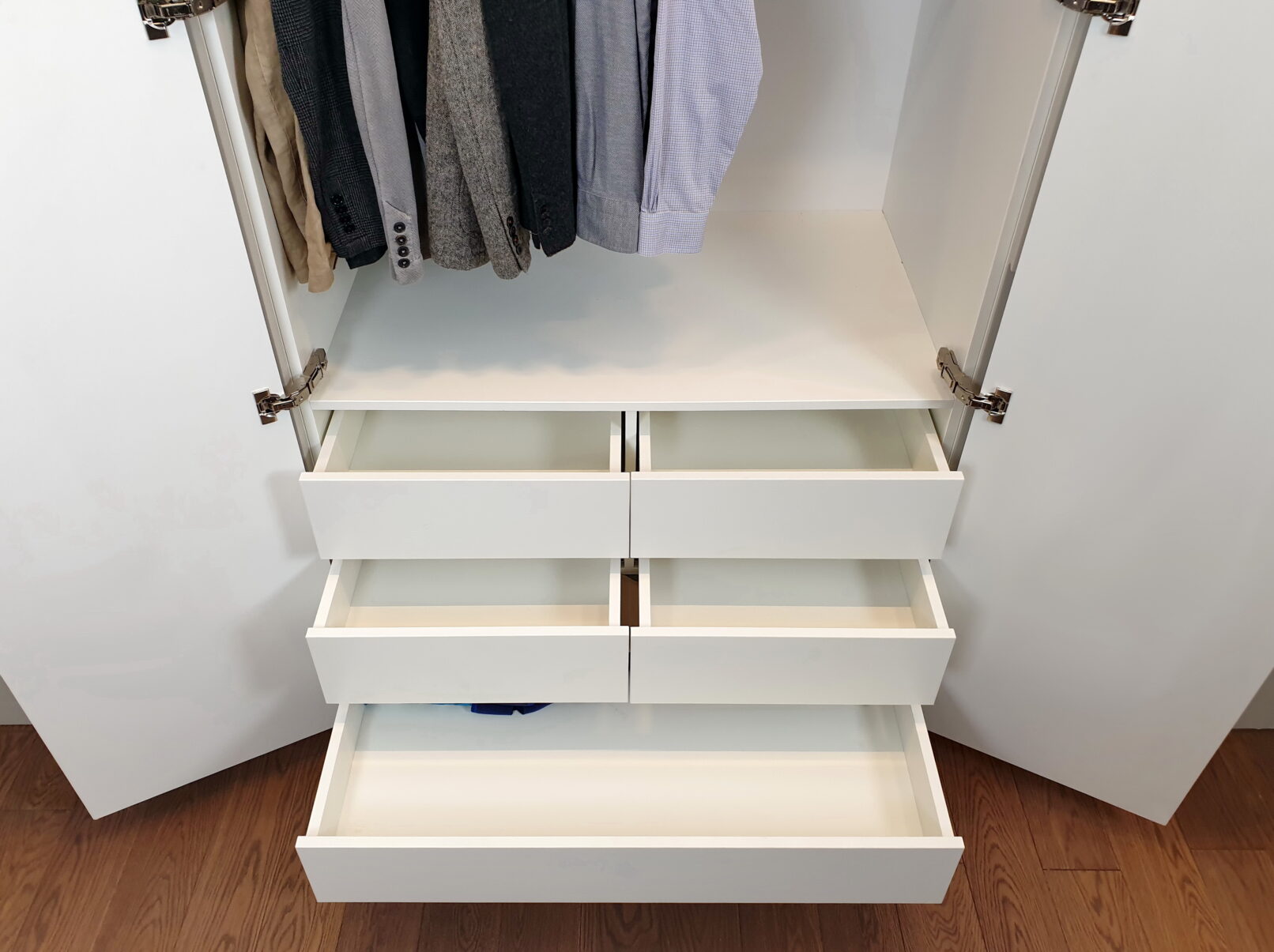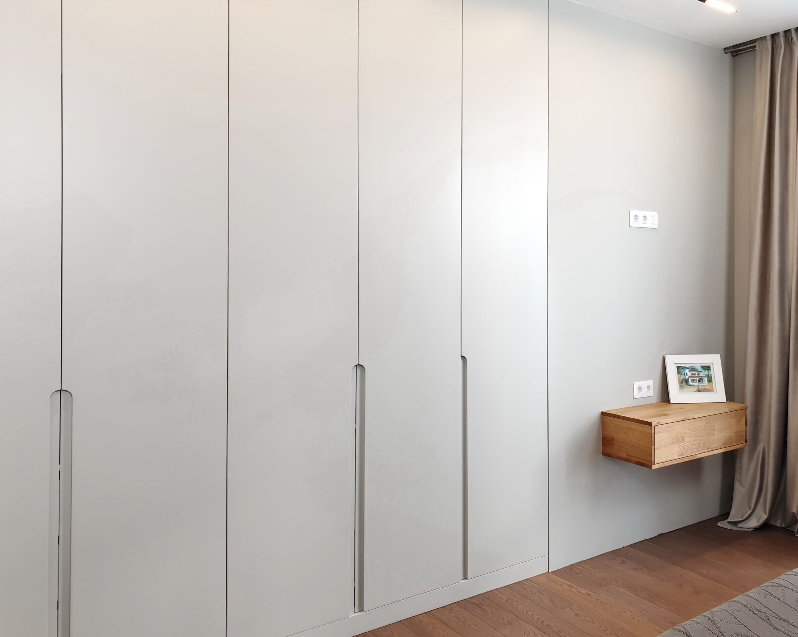 Маленька спальня на замовлення не означає тісноту. Правильне планування і чітке зонування місць для зберігання допомагають знайти баланс між комфортом і простором. Вбудовані шафи стають невіддільною частиною інтер’єру та звільняють корисну площу, а підвісні тумби створюють відчуття легкості й спрощують прибирання. Світлі кольори та продумане освітлення візуально розширюють кімнату, роблячи її затишною та світлою.