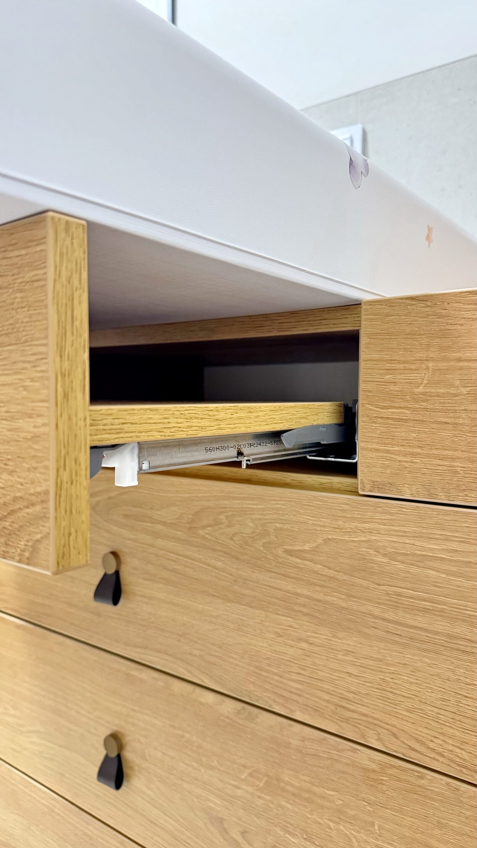 - Трансформація для тривалого використання: коли сповивальна функція більше не потрібна, комод можна використовувати як звичайний меблевий елемент для зберігання речей.