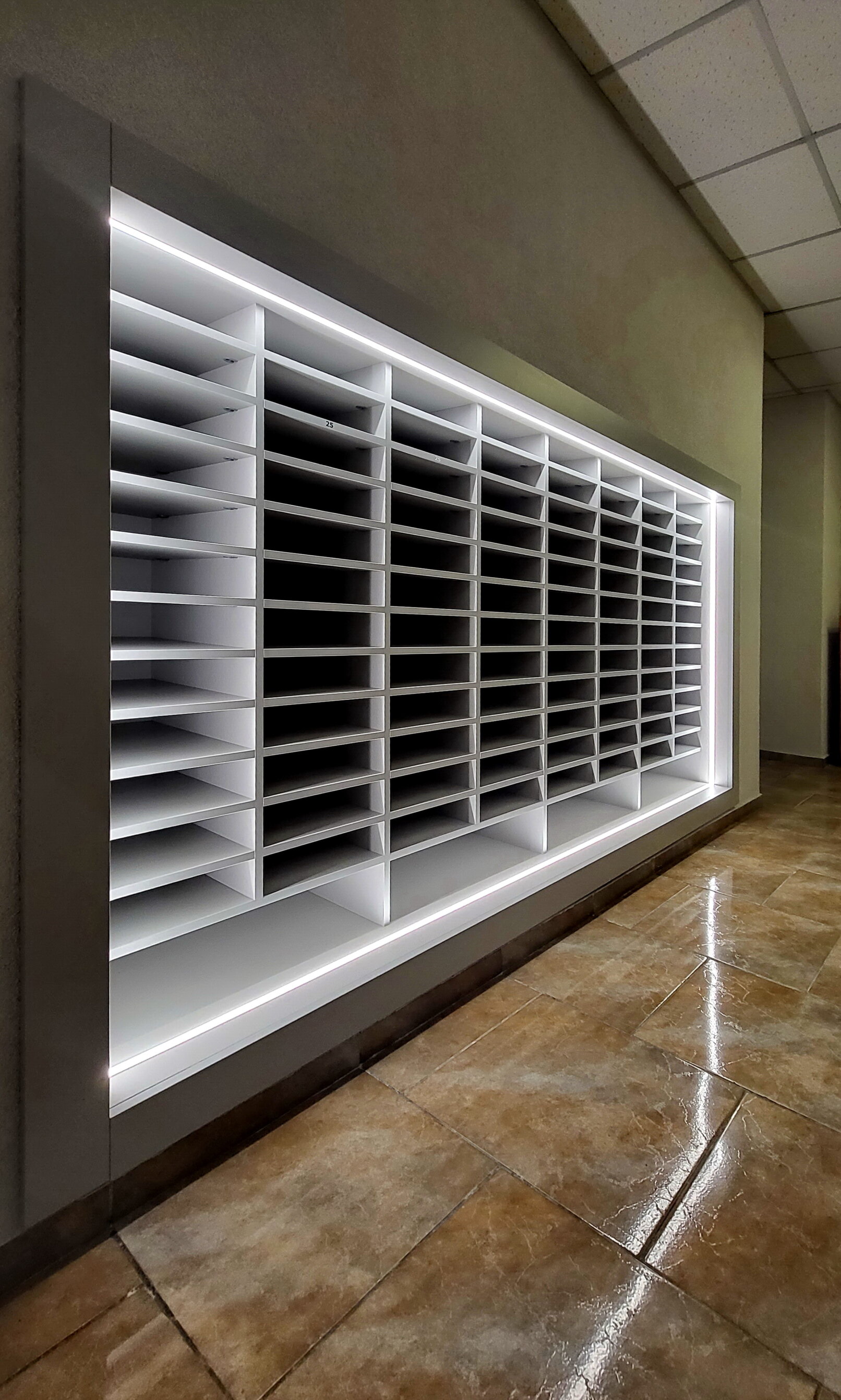 Стійка для кореспонденції – це приклад того, як навіть утилітарний елемент інтер’єру може виглядати ефектно. Конструкція з десятками акуратних комірок створена для впорядкування пошти, документів чи ключів у бізнес-центрі або житловому комплексі.