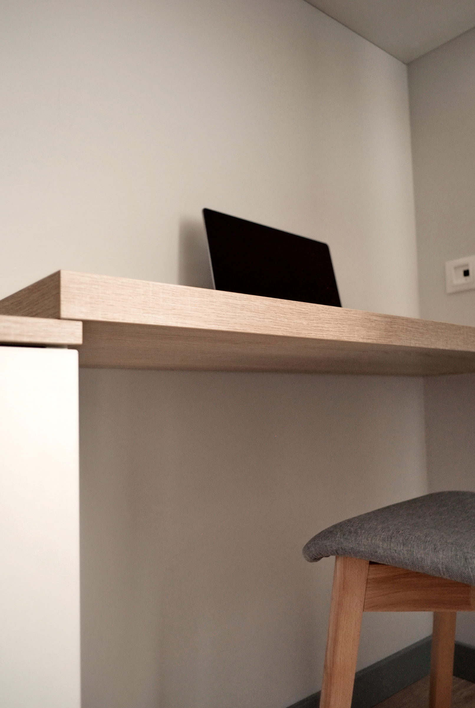 Цей меблевий комплект, тумба під ТВ і робочий стіл, поєднує функцію ТВ-зони та робочого місця в одному рішенні. Дизайн лаконічний: білі фасади, акцент на теплій дерев’яній текстурі стільниці, відкриті ніші для техніки. Робочий стіл інтегровано в конструкцію тумби під ТВ, що дозволяє економно використовувати простір у кімнаті. Для навісних модулів обрані фасади без ручок – це підтримує загальну мінімалістичну стилістику. Всі кабелі та техніка зручно організовані – нічого зайвого в кадрі. Такі рішення ідеальні для квартир-студій, дитячих або робочих зон у вітальні. Якщо ви цінуєте комфорт, функціональність і чисті лінії – звертайтесь у меблеву майстерню Добра Шафа.