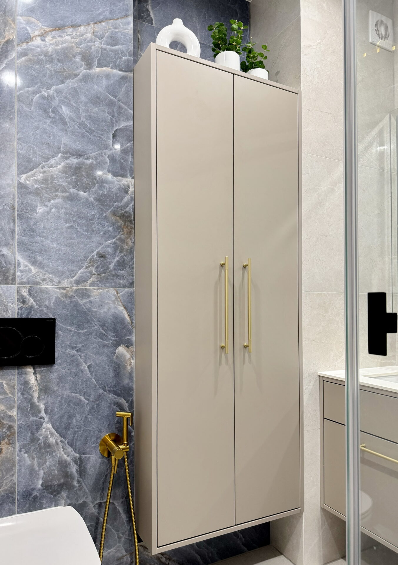 Тумби у ванну під замовлення — це можливість створити меблі, які чітко відповідають умовам вологості, габаритам кімнати і щоденній практичності. У цьому проєкті використано вологостійке ДСП із надійним ПУР-крайкуванням, що захищає ДСП від розбухання та збільшує термін служби.